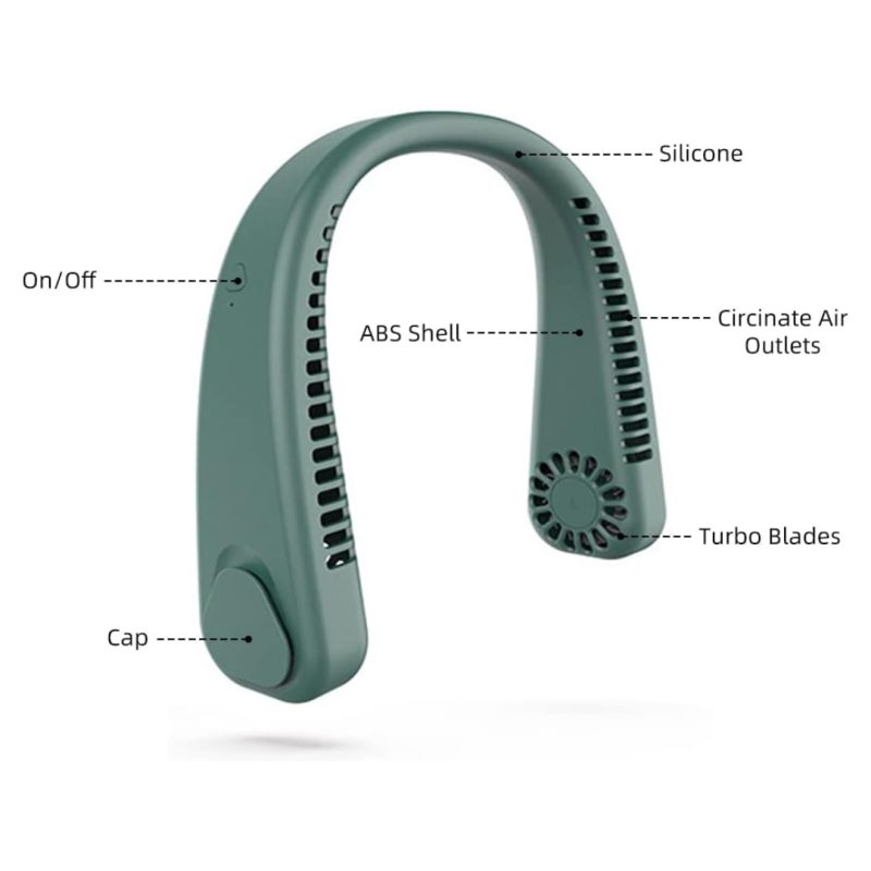 بدنه و پرههای پنکه از پلاستیک باکیفیت و مقاوم ساخته شدهاند که در برابر ضربه و حرارت دوام بالایی دارد. وجود دو موتور توربینی پرقدرت و ۶۴ خروجی هوا باعث میشود جریان باد بهصورت یکنواخت و قوی در اطراف گردن و صورت پخش شود. این ویژگی بهویژه در فعالیتهایی مانند پیادهروی، دوچرخهسواری و کوهنوردی بسیار کاربردی است.